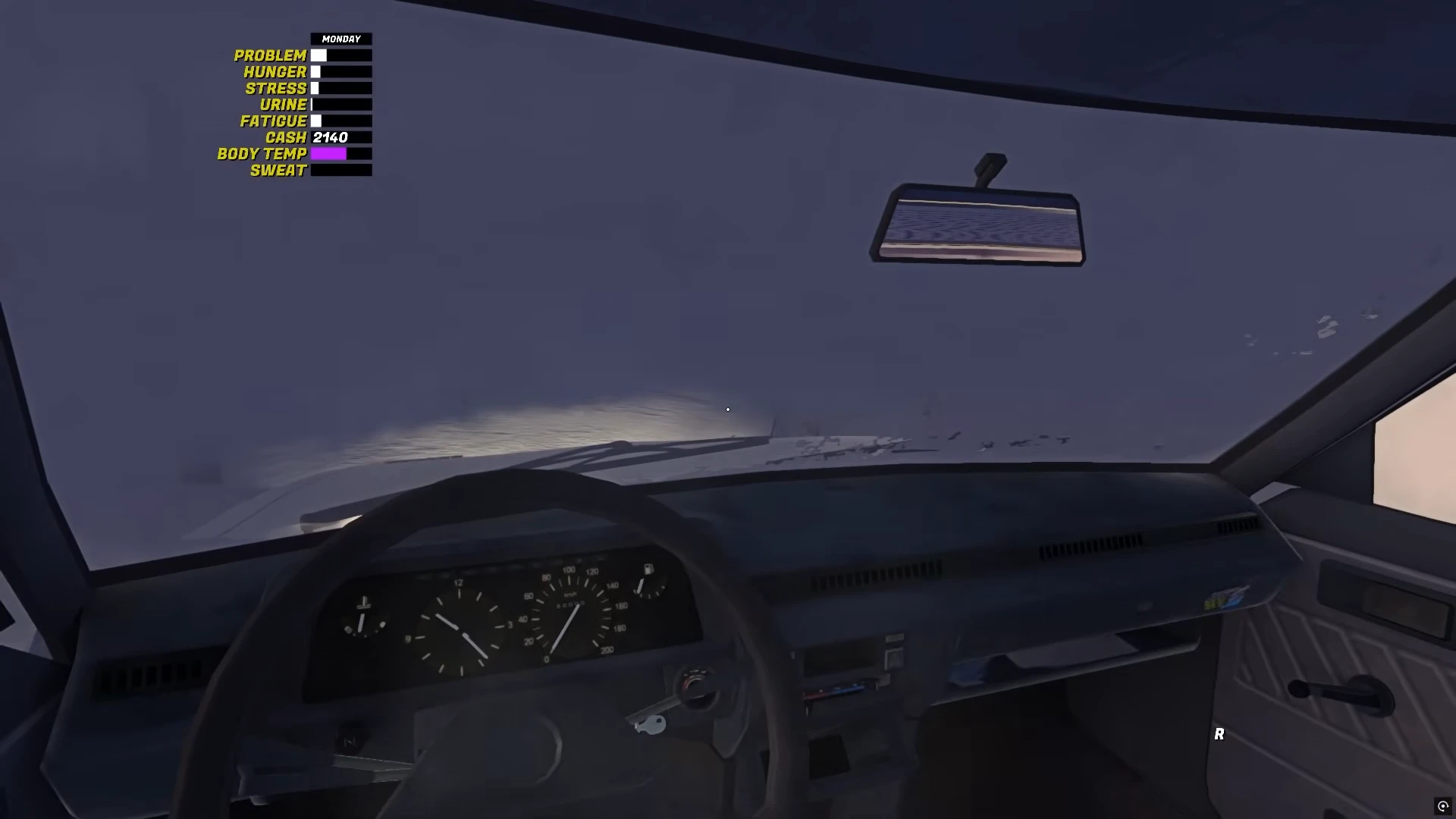В My Winter Car разработчики сделали упор на зимний реализм — и это чувствуется с первых минут игры. Одна из проблем, с которой сталкивается игрок сразу после посадки в машину, — полностью замёрзшие окна. Из-за этого практически невозможно ориентироваться на дороге, особенно в темноте или при плохой погоде.